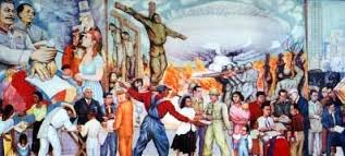 de guerra y sueño de paz (1952) de Diego Rivera, hoy perdido, recogiendo
